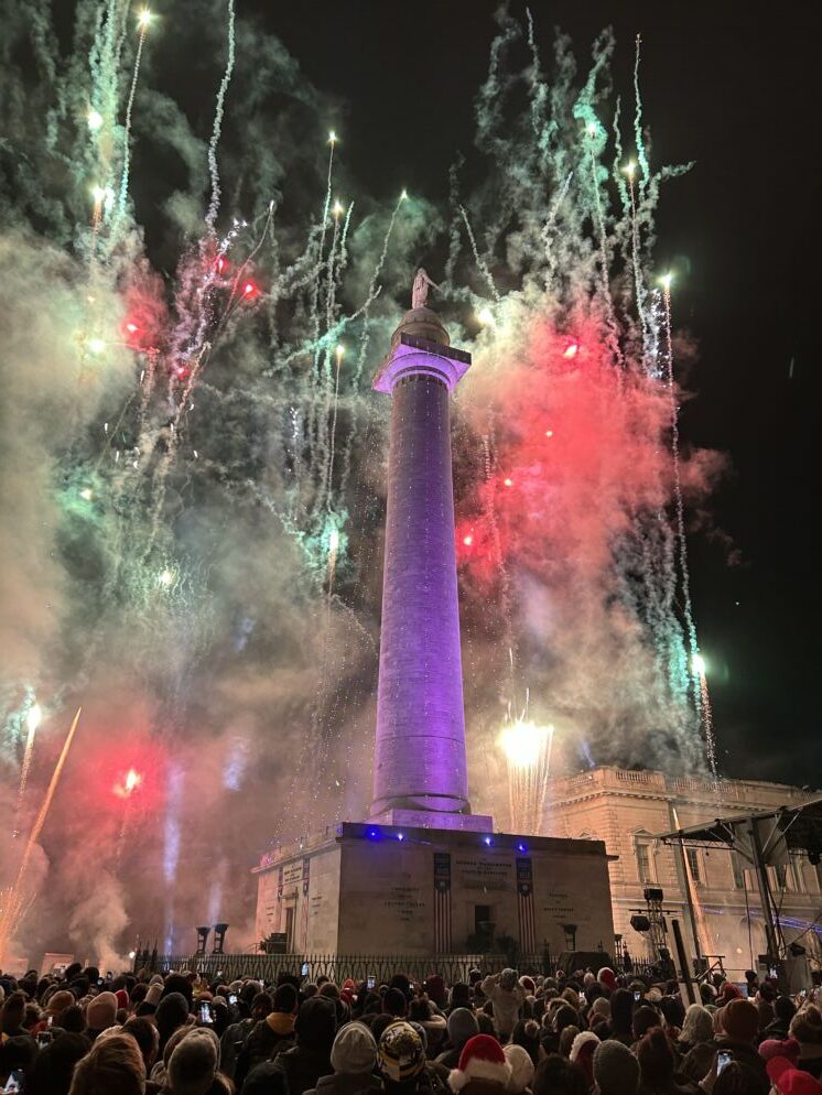 Mount Vernon hosts the Washington Monument Lighting Dec. 4, transforming the neighborhood into a hub of music, vendors and fireworks that light up the night sky. Stately townhouses adorned with lights, festive window displays and the aroma of roasted almonds create an immersive urban holiday scene. Street musicians add a seasonal soundtrack as families gather on the plaza watching the monument flare into festive brilliance, making it a must-see event for both locals and visitors.