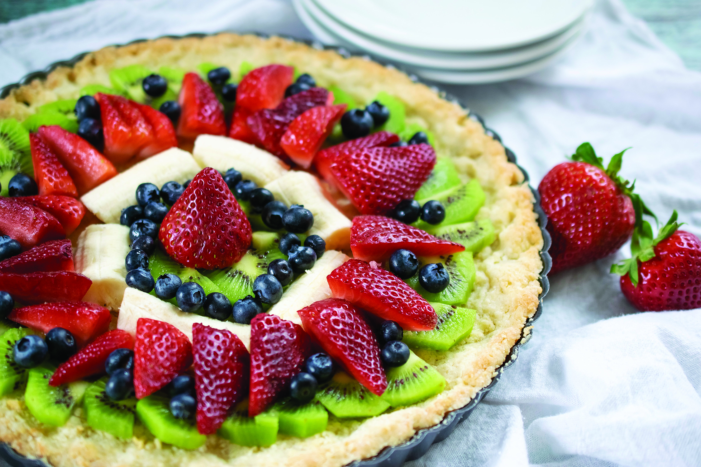 Carefully spread dough into tart pan and bake 15-20 minutes, or until tart starts to turn golden brown. Remove from oven and cool.