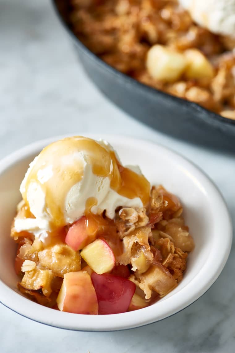 Apple crisp is an absolute must come fall. Requiring a fraction of the work of apple pie, apple crisp still delivers on autumnal delight: warm, fragrant apples bathed in sweet cinnamon, topped with a crisp, crumbly oat mixture that makes the perfect contrast in each bite. Want to make apple crisp even better? Build it in an oven-safe skillet and you can go straight from sautéing your apples to baking the whole thing in the oven without dirtying an extra pan.