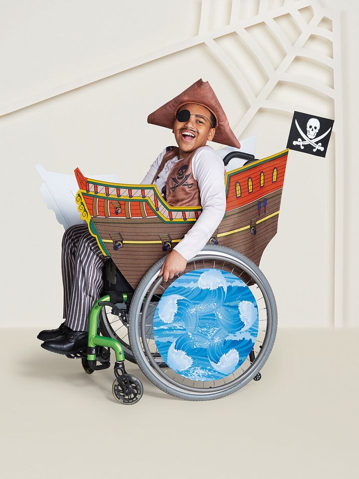 According to the online store descriptions, they were “thoughtfully designed with openings in the back that lend ease of dressing.” The costumes coordinate with decorative pirate ship and princess carriage wheelchair covers, which retail for $45 each. The princess dress and crown set costs $20 and the pirate get-up is $25.